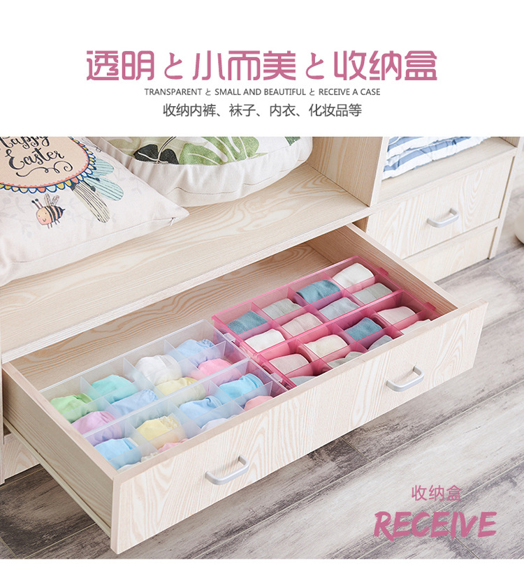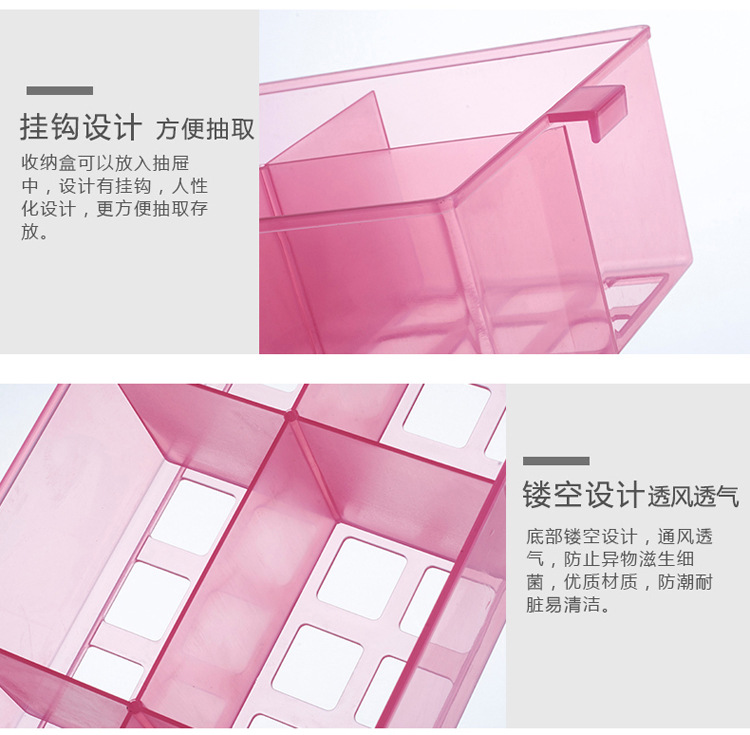 廠家現(xiàn)貨批發(fā)透明分隔收納盒 多格內(nèi)褲襪子收納盒 方形桌面收納盒